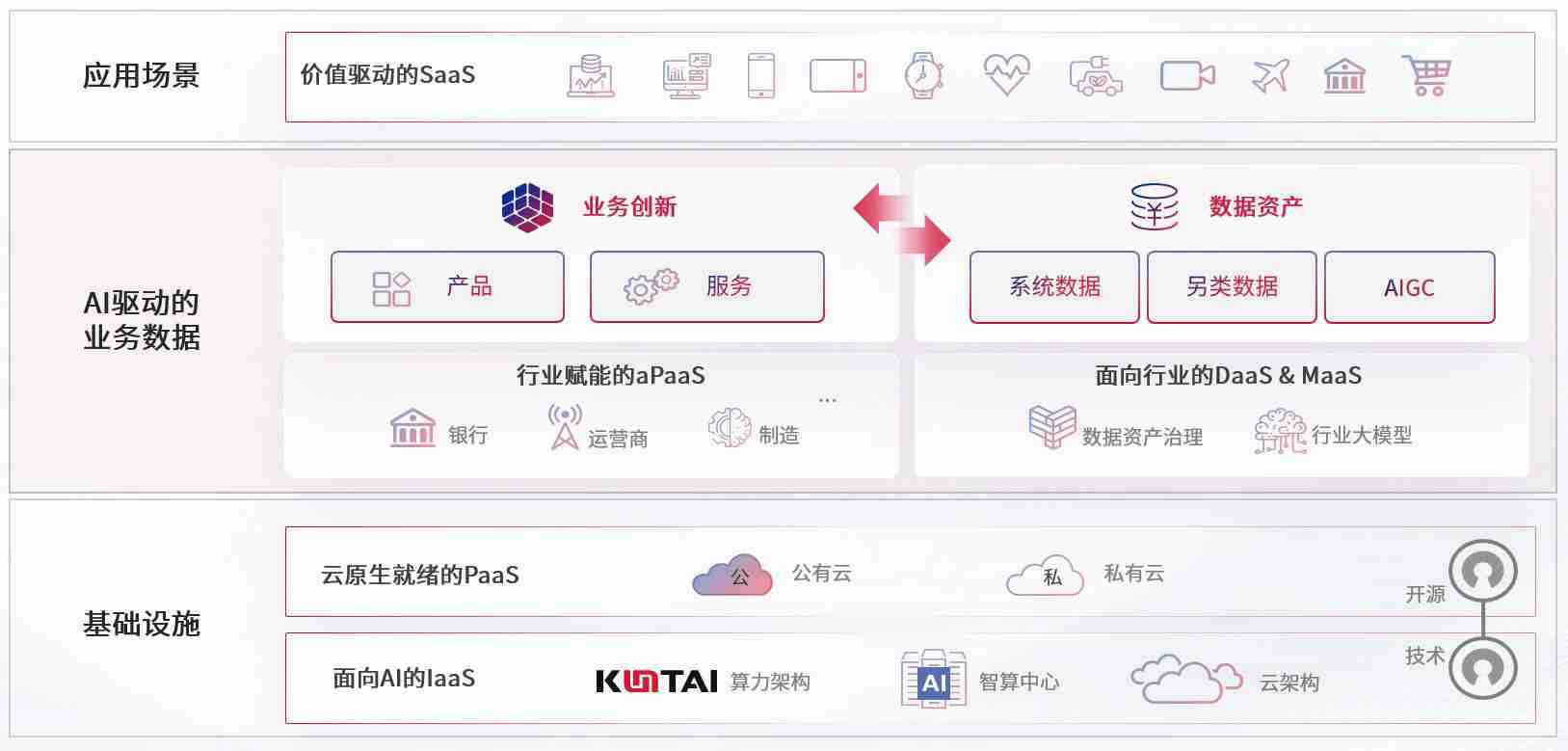 数字时代,,,围绕企业数字化转型的关键要素,,欧博ABG数码开创性的提出数云融合战略和技术体系框架,,,着力在云原生、、、、数字原生、、AI原生和信创产业上架构产品和服务能力,,,为处在不同数字化转型阶段的快消零售、、、、汽车、、金融、、、医疗、、、政企、、、教育、、、、运营商等行业客户提供泛在的敏捷IT能力和融合的数据驱动能力,,,构建跨界融合创新的数字业务场景和新业务模式,,,,助力企业级客户建立面向未来的核心能力和竞争优势,,全面推动社会的数字化、、、智能化转型升级。。。
